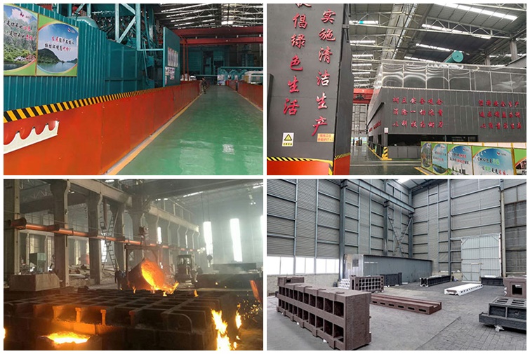 我公司集設計、鑄造、機加工、安裝調試、售前、售中、售后服務于一體,全年產量已突破18000噸。其代表產品為鑄鐵平臺平板,鐵地板、劃線平臺、檢驗平臺、焊接平臺、落地鏜銑床工作臺、火工平臺、風電試驗平臺、墊箱、地軌、地梁、基礎槽鐵、大型機床鑄件、床身、立柱、橫梁,同時承接消失模樹脂砂鑄造……
